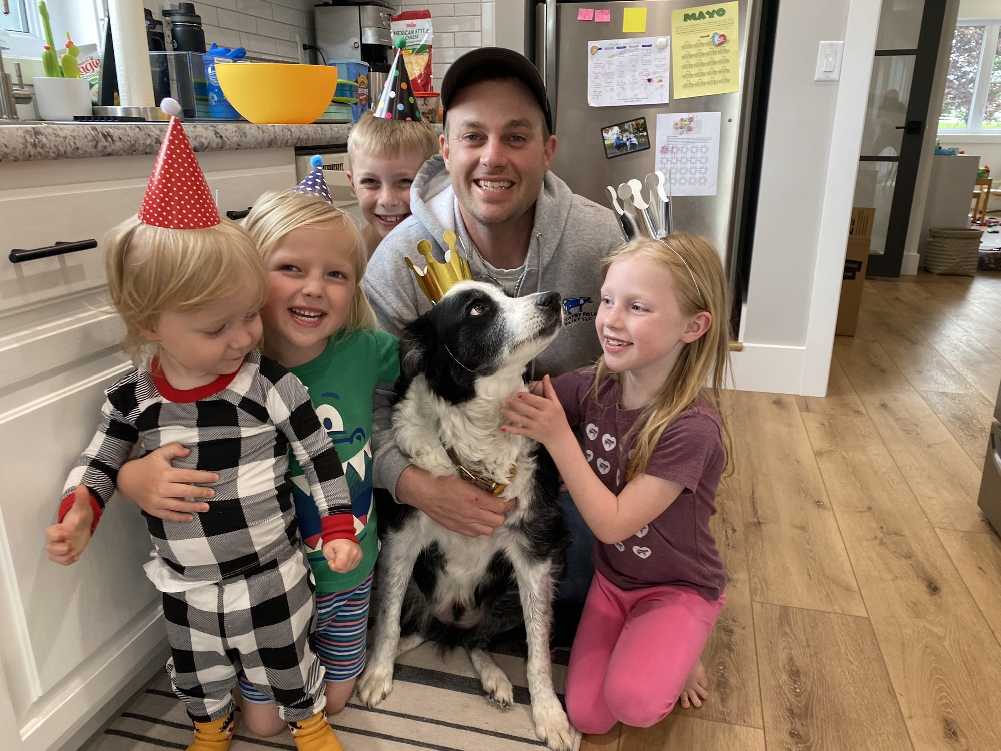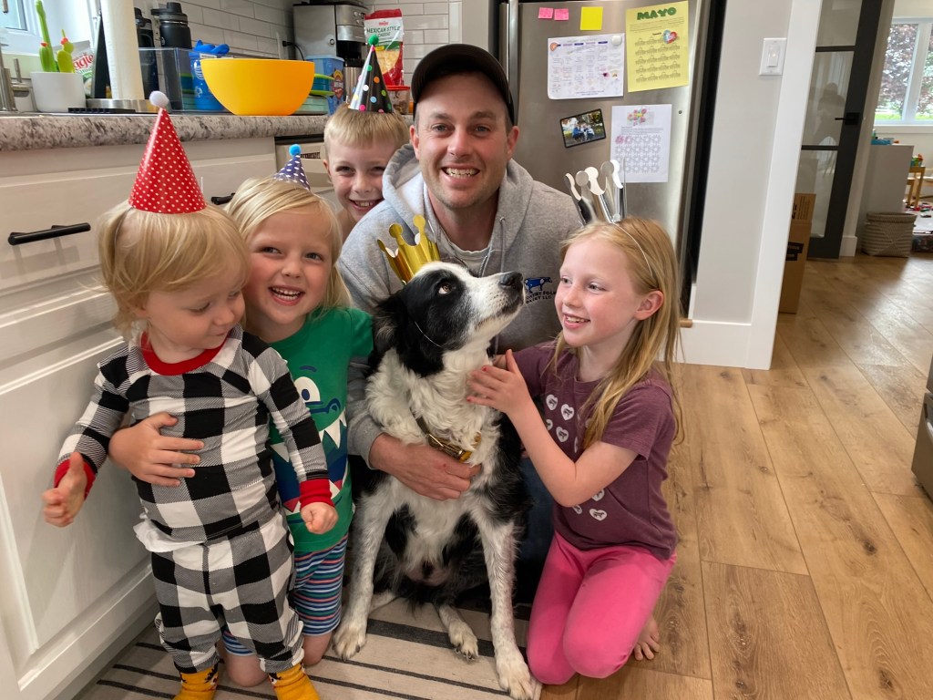 Even as we added kids and chaos, Jersey was always around—napping in my closet, running to greet visitors, and howling along every time we sang Happy Birthday. He loved long walks with Grandpa (my dad), burrowing in piles of leaves, and wrestling with Kyle. He could hear me open a bag of shredded cheese from anywhere in the house and lay next to my bed every night. He slowed down as he got older but still had the heart of a puppy (especially when the words “walk” or “bacon” were involved).