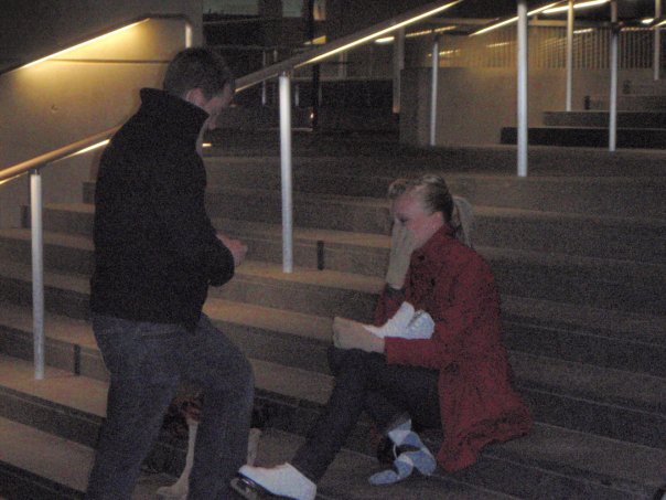 As I pushed my foot into the second skate, I felt something hard in the toe. I pulled out a ring box and wahBAM Dairy Man was down on one knee.