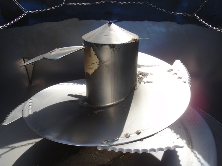 Each section holds a different tasty element of our cows’ feed. Think of it as the cow salad bar. Each component of the feed is mixed together into a carefully constructed ration inside the mixer wagon. This wagon is essentially a KitchenAid mixer on wheels. It doesn’t come in a plethora of pretty colors, but it gets the job done.